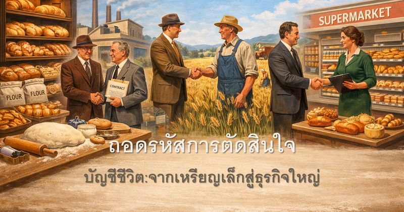 คุณเคยสงสัยไหมว่า... ภายใต้ฉากเรียบง่ายอย่างการยืนต่อรองราคาแป้งในตลาดปี 1948 หรือการตัดสินใจจ้างคนงานเพิ่มเพียงคนเดียวในวันที่เงินสดตึงมือ Ethan Vale กำลังสู้กับอะไรอยู่? ในนิยาย "บัญชีชีวิต: จากเหรียญเล็กสู่ธุรกิจใหญ่" สิ่งที่คุณเห็นอาจเป็นเพียงการดิ้นรนของชายคนหนึ่งที่พยายามประคองร้านขนมปังเล็กๆ ให้รอดจากซากสงคราม แต่ในฐานะผู้เขียน ผมตั้งใจซ่อน “โครงสร้างความคิดทางธุรกิจ” ที่แยบยลไว้ในทุกบทสนทนาและอากัปกิริยาของตัวละคร ทำไมคุณถึงไม่ควรพลาด "เบื้องหลังแนวคิดของซีรีส์" นี้? • X-Ray ฉากธรรมดาให้เห็นกลยุทธ์: ผมจะพาคุณไปดูว่าการเลือกซื้อวัตถุดิบในวันฝนตก ไม่ใช่เรื่องของโชคชะตา แต่มันคือบทเรียนเรื่อง Cash Flow Management และการบริหาร Opportunity Cost ที่นักธุรกิจยุคนี้ยังต้องเผชิญอยู่ทุกวัน • Logic Behind the Luck: ในโลกธุรกิจไม่มีคำว่าโชคดีถาวร ผมจะเฉลยเหตุผลที่ Ethan กล้าตัดสินใจในสภาวะที่บีบคั้นที่สุด... เพื่อให้คุณได้ย้อนถามตัวเองว่า "ถ้าเป็นคุณ... คุณจะวางหมากกระดานนี้อย่างไร?" • เปลี่ยนทฤษฎีเป็น "การกระทำ": ผมตัดศัพท์วิชาการที่น่าเบื่อออก แล้วแทนที่ด้วยสัญชาตญาณหน้างาน ซีรีส์นี้จะช่วย "เชื่อมจุด" ให้คุณเห็นว่าหลักการบริหารระดับโลก ถูกนำมาปรับใช้ในระดับรากหญ้าให้กลายเป็นผลกำไรได้อย่างไร "กำไรอาจตัดสินผลแพ้ชนะในวันนี้ แต่ระบบคิดจะตัดสินว่าคุณจะอยู่รอดข้ามยุคข้ามสมัยและผ่านพ้นวิกฤติได้หรือไม่" การอ่านนิยายเรื่องนี้ จะทำให้คุณได้รับความสนุกเพลิดเพลินและแรงบันดาลใจ... แต่การอ่าน "เบื้องหลังแนวคิดของซีรีส์" ควบคู่ไปด้วย จะทำให้คุณได้ "พิมพ์เขียวทางความคิด" ที่สามารถนำไปปรับใช้กับเหรียญเล็กๆ ในมือคุณได้ทันที มาร่วมแกะรอยการสร้างอาณาจักรของ Ethan ไปด้วยกัน แล้วคุณจะพบว่า... ทุกการตัดสินใจในชีวิตประจำวัน อาจเป็นจุดเริ่มต้นของความสำเร็จที่ยิ่งใหญ่ในอนาคต